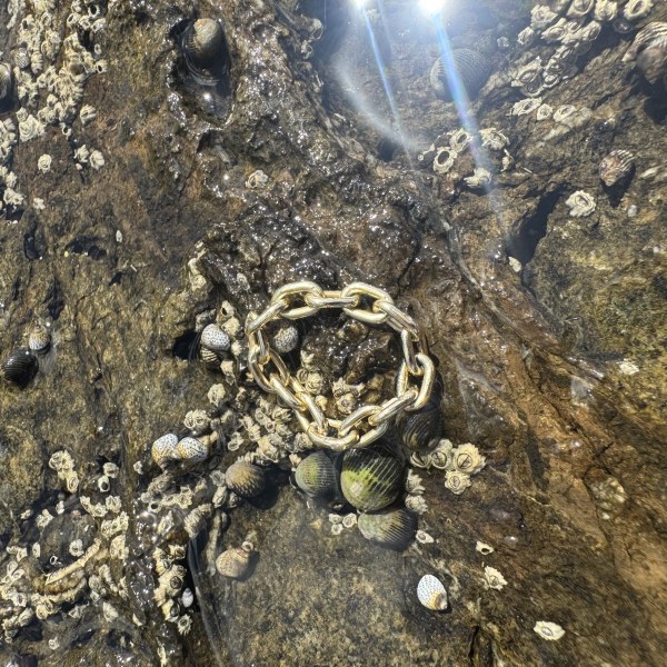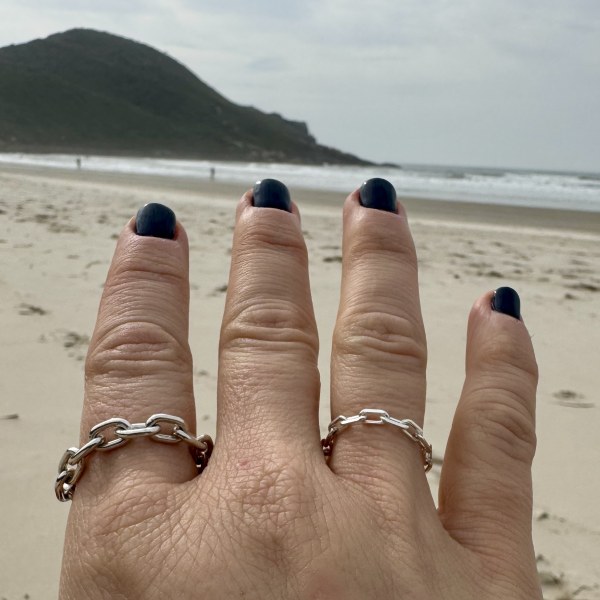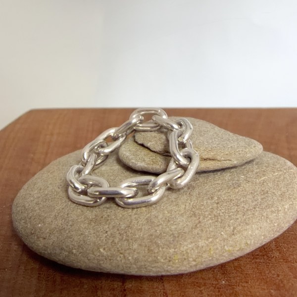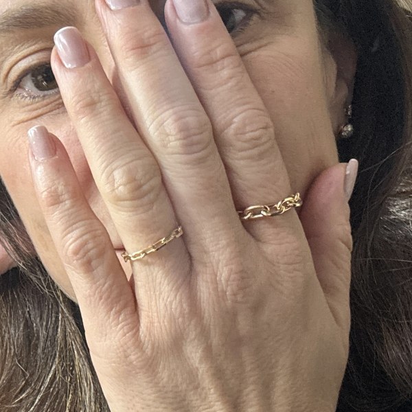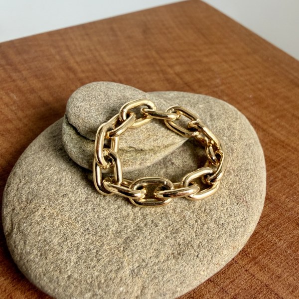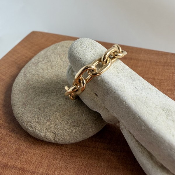 Anel de elos grossos em prata 925 com banho de ouro 18k.